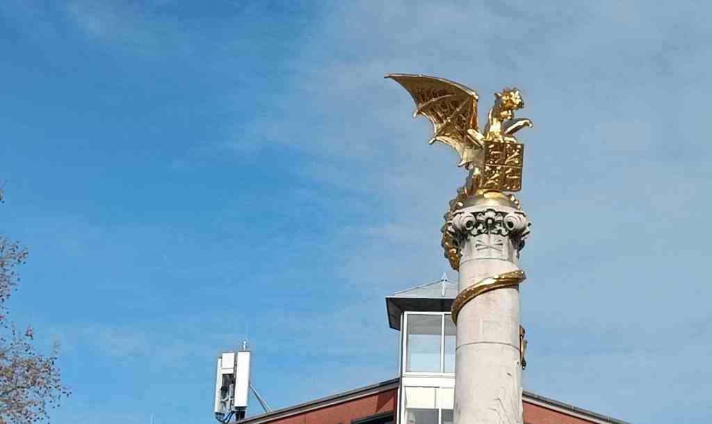 - Het treinstation met het gouden beeld van een draak.