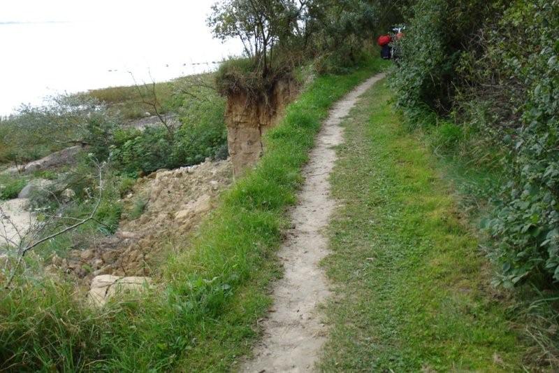 Ik rijd een stuk langs een zgn. steilkust aan de bosrand. Soms staan er bordjes met een waarschuwing voor afbreekgevaar. De steile kusten zijn niet van steen maar van zand of klei.