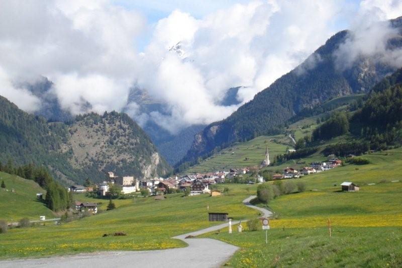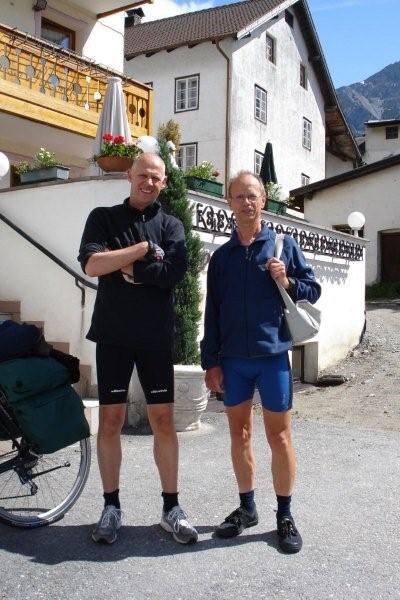 In Sankt Valetin ten zuiden van de Reschensee lopen we Reitsma, de schrijver van het routeboek, tegen het lijf bij een terras van een restaurant. Hij is een maand onderweg om boekje 2 te updaten.