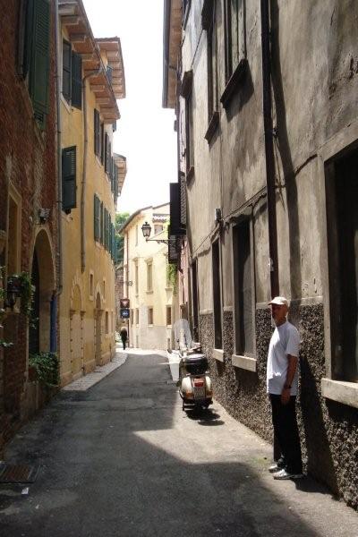 In Bardelino zien we al gauw een fietsenmaker. Deze corrigeert mijn derailleur. Ook stelt hij de versnelling goed af. De rit gaat over niet al te hoge heuvels naar Verona. Het is daar behoorlijk druk met toeristen.