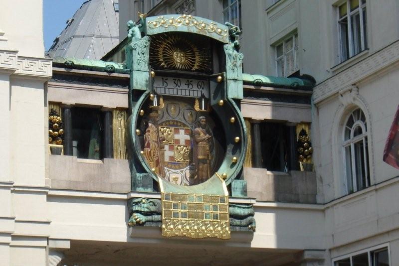 Anker Uhr met 12 beroemde Weense persoonlijkheden, ieder uur een ander. Om 12 uur komen ze alle 12 naar voren.