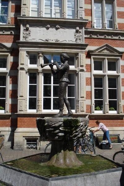 Vóór Hamelen voert onze route over een wagensporenpad, dat deels alleen maar een enkel zand- of keienspoor is van ongeveer dertig centimeter breed met overhellend onkruid, inclusief brandnetels. Het gaat toch alles redelijk goed. Om 12.00 uur staan we voor de Bahnhof van Hamelen. We hebben nog ruim een uur de tijd om wat te eten, koffie te drinken en om de stad te bezichtigen. Veel dingen in de stad hebben te maken met het sprookje van de rattenvanger. Er wandelen veel toeristen door de winkelstraat. Het lijkt een beetje op Volendam of Thorn. Diverse panden hebben mooie ouderwetse puien.
