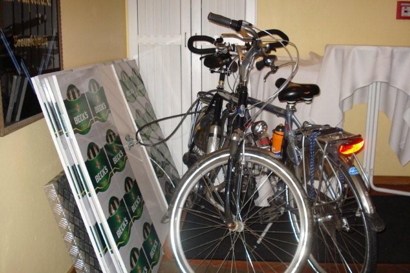 Onze fietsen aan de ketting in hotel Haus zu Hanse