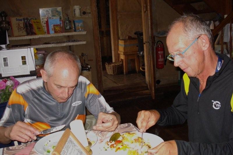 Aan de boerenomelet (Bauernfrühstück) in eetcafé in voormalige school
