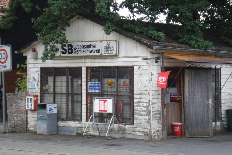 Als we op een bankje voor de kerk een broodje eten, zien we aan de overzijde van de weg een soort gebladderde miniloods, wat een winkel zou kunnen zijn. Er staat SB (de afkorting van zelfbediening) op. Ik ga maar eens kijken. Een dame van ongeveer 75 jaar staat achter een kassa. Ze heeft aan één kant van de winkel een klein assortiment kruidenierswaren staan en aan de andere kant diverse andere zaken, zoals garenklosjes, breinaalden, enveloppen, hobbypapier, enz. We kopen er frisdrank en om gelijk te nuttigen een halve liter karnemelk voor mij en een bakkie yoghurt voor Bert.