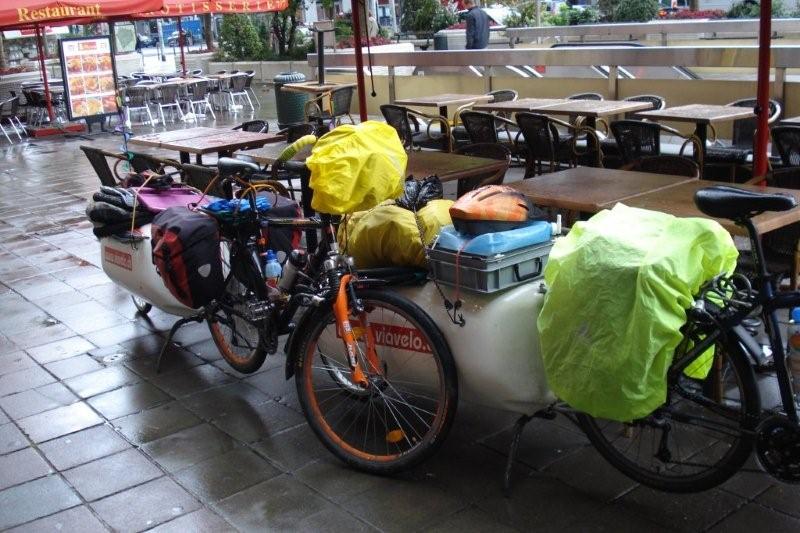 De vrouwen gaan met de trein, maar blijven nog een paar uur als wij om half tien met de fiets richting Atomium gaan. Bij het Atomium wordt net als gisteren via een kabel abgeseilt. Ze hebben vandaag beter weer. Het is droog en zo nu en dan komt de zon door.