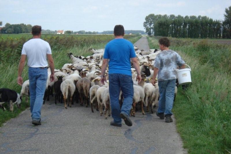 In Nispen, een dorp in Nederland met veel kroegen, zijn alle café′s nog dicht. Een inwoonster van het dorp geeft ons de tip om in het dorpshuis koffie te drinken. Ze zegt daarbij: ′Het is ook nog goedkoper′. In de buurt van Oudemolen komen we een schaapskudde tegen met herders en honden. Altijd een leuk gezicht.
