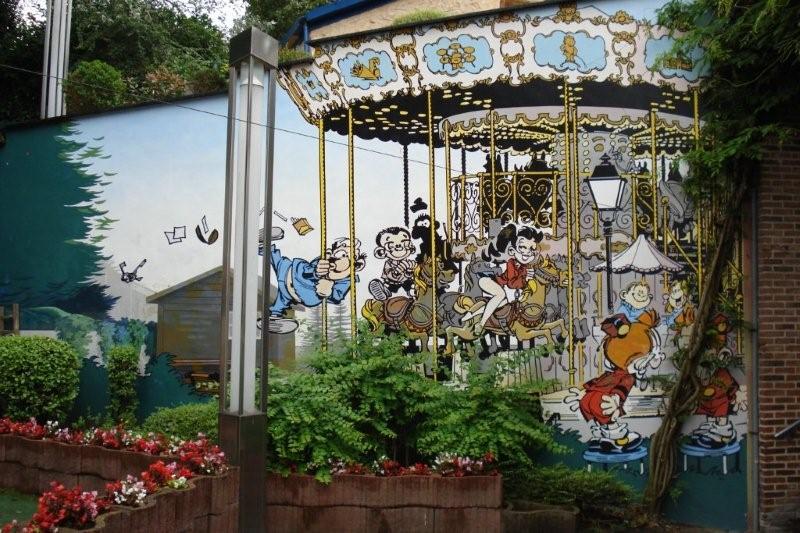 Op veel plekken komen we afbeeldingen van striptekeningen tegen op kale muren van huizen en winkels. Zie mijn apart bericht met foto’s van strips. Ook zien we een aantal blokken nieuwe sociale huurwoningen. Hier spelen veel vooral gekleurde kinderen.