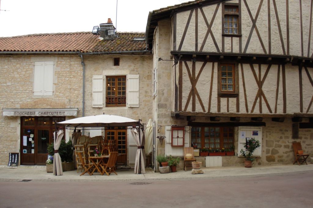 Onderweg vlak voor Nanteuil-en-Vallee steek ik mijn hand op voor een boer. Hij roept terug: “A gauche” (linkaf). Dit is vlak voor een onoverzichtelijke kruising. Ze rijden zeker weleens verkeerd of vragen hem de weg. Het dorpje zelf lijkt uitgestorven op deze feestdag. Maar het dorpscafé is open. Het is nu kwart over tien ’s morgens. Er zitten wat mannen achter een glas bier. De barman zet een tafel en een stoel voor me bij de brandende open haard. Hij vraagt: “Een koffie?” Ik zeg: “Een koffie met melk”. In Frankrijk krijg je koffie in erg kleine kopjes, als je zwarte koffie bestelt. Daarom drink ik onderweg maar koffie met melk. Even later komt er een stamgast binnen. Hij geeft iedereen een hand, mij ook. Ik denk: dat is zeker een notabele. Even later komt er weer een gast binnen. Die geeft ook iedereen een hand. Ik had dus ook een hand moeten geven toen ik binnen kwam. Nu de volgende keer als ik hier weer kom.