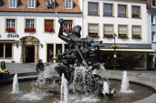 Bovenop een berg staat de Wevelsburg, een kasteel dus. We maken een paar foto′s en fietsen door naar Büren. Ik denk dat deze plaats iets van doen heeft met het Koninklijk huis. Bert denkt van niet. Die zegt dat het Buren van het koninklijk huis in de Betuwe ligt.