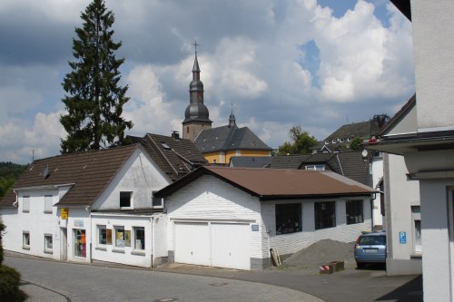 Vandaag zullen we een niet toeristisch gebied doorkruisen tussen Sauerland en het Bergische Land. Het is me weer gelukt om een aantal kilometers verkeerd te rijden. Als ik het in de gaten heb, kunnen we gelukkig een heel stuk naar beneden rijden. Olpe blijkt een aardig groot dorp te zijn. Er is een station, een belastingkantoor en een C&A.