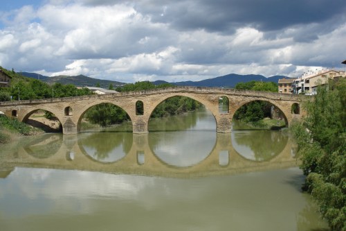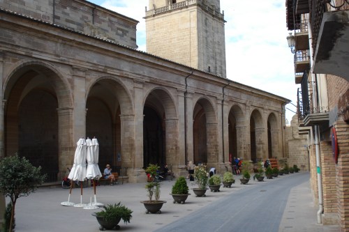 Viana bezoek ik ook. De Santa Maria kerk ziet er erg mooi uit. Ja, lezers. Ik bezoek veel kerken. Frits zal dit wel mooi vinden. Een lesje Spaans voor beginners: Bijna iedere zegt hola (spreek uit: ola) als ze iemand anders zien. Buenes dias kan natuurlijk ook, maar is deftiger, formeler. De VVV kan me in Viana niet aan stempel helpen. Ze zijn namelijk de hele week open, behalve op maandag. Na Viana zit ik niet meer in Navara. Nu geen plaatsnamen meer in twee talen (Spaans en Baskisch). Nu is alles Rioja wat de klok slaat. Zelfs de universiteit van Logroño heet Rioga Universiteit.