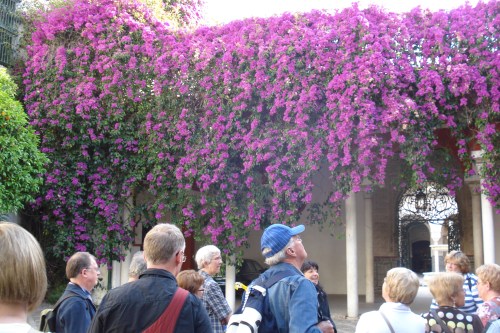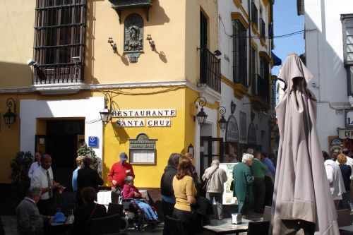 Vandaag maken we eerst een wandeling in de voormalige Joodse wijk, die heet hier Santa Cruz. In mijn ogen geen toepasselijke naam. Net als in Cordoba is dat hier de oudste wijk met smalle straatjes. Hier en daar is het wel uitkijken voor hondenpoep. We nemen koffie op een leuk terras.