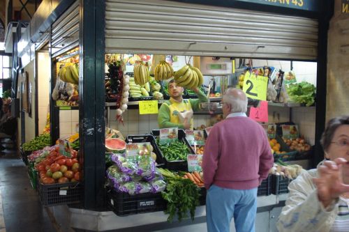 In Jerez de la Frontera wandelen we in een overdekte markt met veel kramen met vis. Ik vind dat een mooi gezicht. Die vissen die je zo aankijken. Joke moet even wennen maar vindt het toch niet zo erg stinken. Het is in deze stad nog een beetje fris, maar de zon wordt langzamerhand toch steeds warmer.