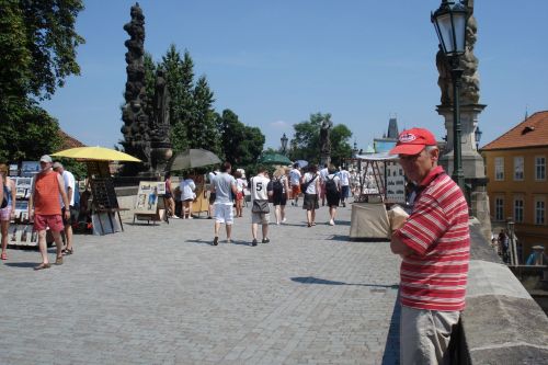 Met tram 12 gaan we naar het centrum. Natuurlijk gaan we over de Karelsbrug en zien we de toren met de bijzondere uurwerken. Op het hele uur gaan de luikjes boven het uurwerk open en komen heiligenbeelden te voorschijn, die een rondje draaien voor die luikjes. Ook speelt een echte heraut een deuntje vanaf de torenomgang boven in de toren. We struinen langs bezienswaardigheden en zitten lang op een terras.