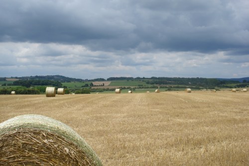 In Fontenoy-le-Chateau is het rond het middaguur. Hier neem ik een brake in een dorpscafé. De koffie kost hier 1 euro. Verder voert de tocht door bossen, graanvelden en dorpjes van weinig betekenis. De boerderijen zien er soms erg rommelig uit. Ook zie je hier veel bloemen in de bermen. De vergezichten vanaf de graanvelden in het dal in zijn prachtig. Dat kan je niet vastleggen op de foto. Je mist daarbij de diepte.