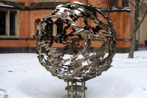 Middenin Düsseldorf ligt Hofgarten, een soort Vondelpark, veel groen (vandaag wit), bomen, vijvers en uitzicht op mooie panden rondom het park.
