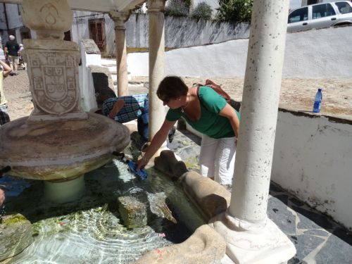 Na de lunch gaat de bus naar Castelo de Vide. Dit dorp doen we te voet. Er zijn flinke stijgingen in de straatjes onderweg naar het plaatselijke kasteel. Bij een kerk worden voorbereidingen gemaakt voor het feest van Nossa Senhora de Alegria (Onze Lieve Vrouwe van het Plezier). Je kunt er loodjes kopen.
