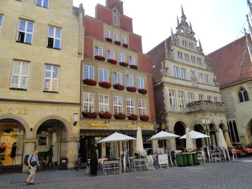 Om 10 uur komen we aan in Münster. Het is mooie oude stad, maar goed is te zien dat veel oude gebouwen na de Tweede Wereldoorlog opnieuw zijn opgetrokken in ongeveer de stijl van vóór dat zij in puin werden gegooid door bommen uit geallieerde vliegtuigen.