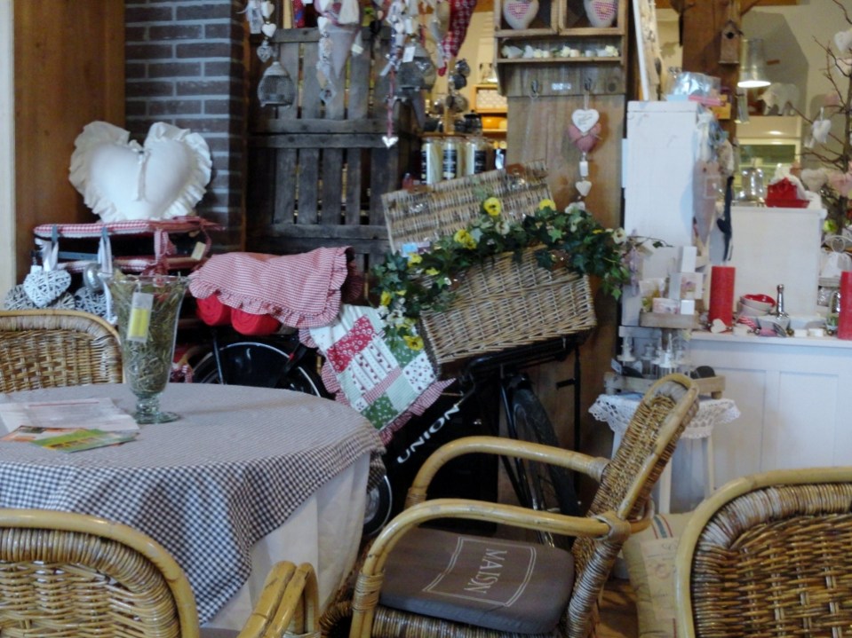 Bij Landwinkel De Grote Doorn ga ik voor een kop thee. Het is inmiddels 13.00 uur. Met de eigenares praat ik over het boekje van het Grote Rivierenpad, door haar nog het Lingepad wordt genoemd. Zijn vind het jammer dat niet in het boekje is vermeld dat wandelaars bij haar koffie of thee kunnen drinken. Ik kan haar vertellen dat op de site van het boekje dit inmiddels wel is aangegeven. Ze vraagt me of het slim is om een bord met een grote kop en schotel bij het hek neer te zetten. Het lijkt mij een goed idee. Ze vraagt of ik uit de buurt kom. Als ik zeg dat ik uit de Bollenstreek komt, vertelt ze me dat haar broer in Lisse woont en getrouwd is met een dochter van L, de eigenaar van een bekende beddenspeciaalzaak in Lisse. Voorbij Slijk-Ewijk gaat de route een stuk over de Waaldijk.