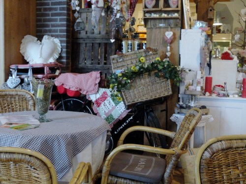 Het volgende dorp is Zetten. Hier zie je winkels van de bekende merken, zoals Hema, Trekpleister, Albert Heijn en C1000. Bij deze laatste winkel holt een moeder naar buiten en roept: Bas blijf staan. Een ventje rent tussen de geparkeerde auto’s het plein op. Als de peuter bij zijn kraag is gepakt wordt hij door zijn geschrokken moeder de winkel weer ingesleurd. Bij de bakker een stukje verderop is een mooie en ruime koffiehoek ingericht. Geïnspireerd door het reclamebord bij de deur bestel ik een koffie met warme apfelstrüdel. De mevrouw van de bakkerszaak zegt dat ze niet weet of dat wel gaat. De waterleiding is gesprongen. Ik zie inderdaad een monteur in een kelderluik staan. Over vijf minuten is er weer water. Dat lijkt me niet erg. Ik krijg in elk geval verse koffie.