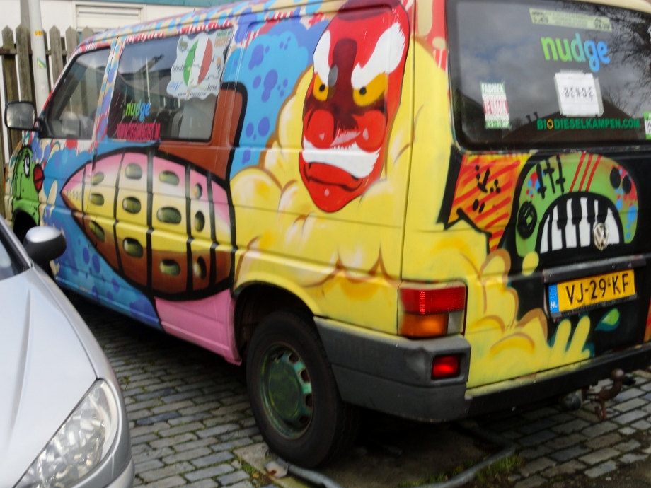 Vanaf Oegstgeest loop ik weer langs de Haarlemmertrekvaart; dat is hetzelfde kanaal als de Leidsevaart. Hier in Leiden wordt geklust aan de weg en de vaart in de buurt van de woonarken en het oude regionale woonwagenkamp.