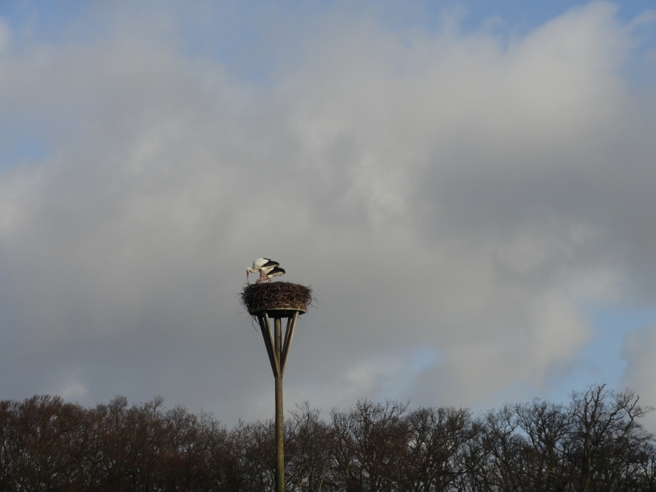 De Dorpsstraat van Warmond is gezelliger dan de Herenweg die in het routeboekje staat beschreven. Daarom maak ik een klein ommetje door deze oude Warmondse straat. Omdat de aanwezige horeca niet open is op maandagmorgen scoor ik gratis koffie bij de Albert Heijn in dit dorp gelegen aan de Kagerplassen. Op de Herenweg zie ik tot mijn verbazing ooievaars op een nest zitten.
