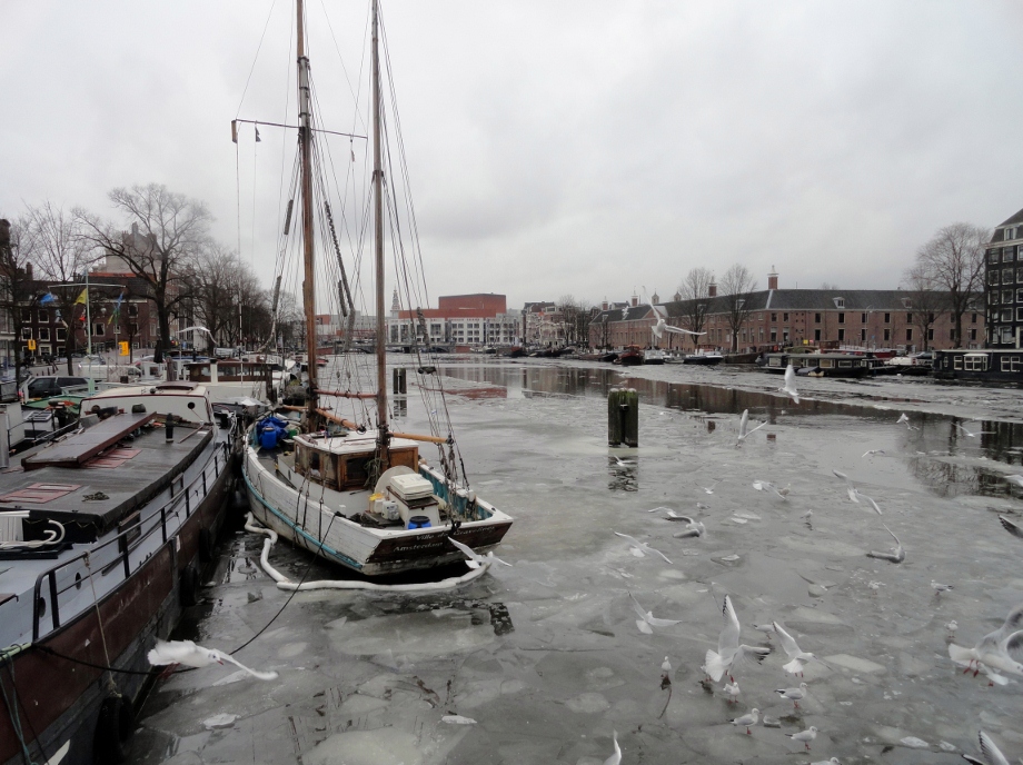 Voor mijn werk ben ik een dagje in Amsterdam Centrum. In de lunchpauze loop ik een straatje om in de buurt van de Binnen Amstel. Vandaag geen vorst meer maar een beetje regen.