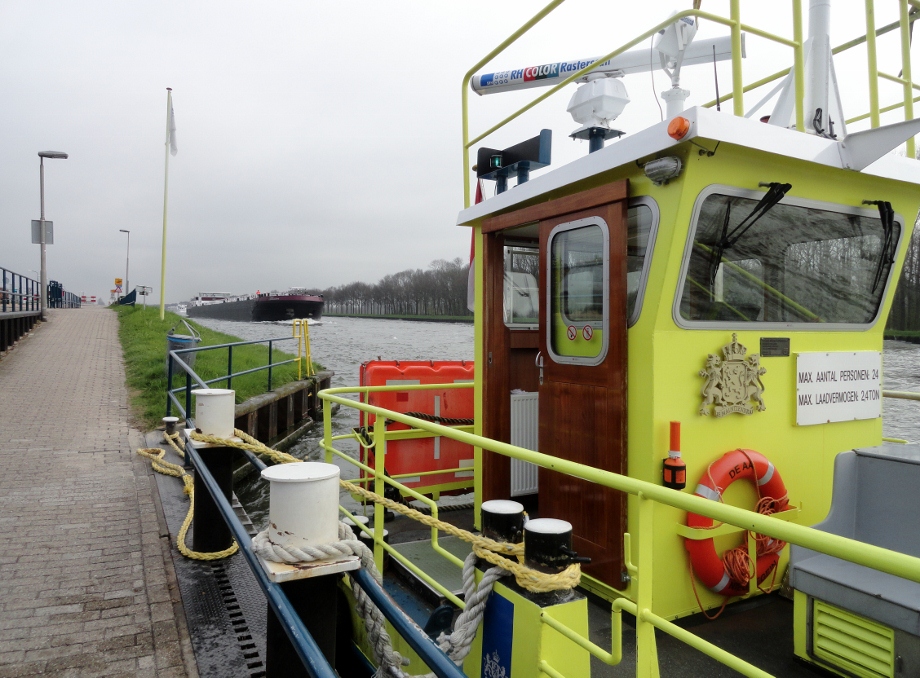In Breukelen zetten we de auto ergens in een woonstraat. Bij het station zijn werkzaamheden bij het P+R- terrein en op de twee grotere parkeerterreinen in het centrum moet je parkeergeld betalen. Vanaf Breukelen gaan we een stukje langs het Amsterdam-Rijnkanaal om met het rijkspontje over te steken. Er gaan net een paar grote boten langs. Ik vraag de veerman wanneer hij gaat varen. Hij zegt ‘Om elf uur.’ Hoewel het geen 1 april meer is, is dit een grapje. Een paar minuten later start hij zijn vaartuig.