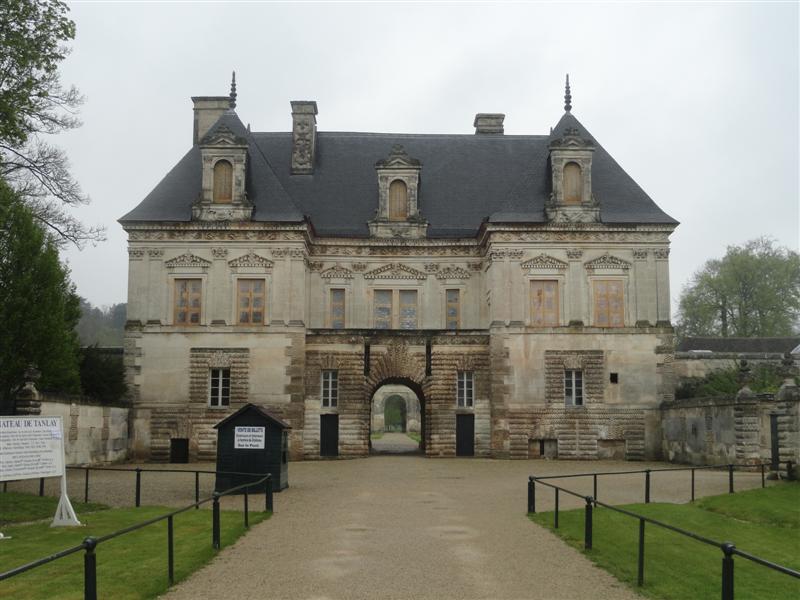 Als ik drie kwartier onderweg ben op een pad, dat aardig lijkt op dat ik gisteren aan het eind van de middag kom ik aan in het dorpje Tanlay. Gisteren passeerde ik dat dorp toen ik kilometers aan het maken was. Ik ben de verkeerde kant opgereden. Hoewel het slecht weer is het niet verkeerd dat ik dit dorpje bezoek. Er is een fraai kasteel en daarnaast een restaurantje. Hier lunch ik op mijn dooie gemak terwijl de fiets onder het zonnescherm in de tuin staat. Er zitten vandaag geen mensen op het terras..