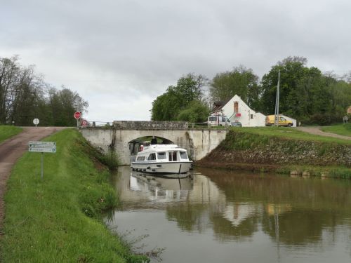 Na 25 km ben ik bij Ecluse (sluis) 16 met volgens een bord multiservices o.a. @point-net, maar ze zijn vandaag niet open. Pas in het hoogseizoen? Het dorp Epiry ligt op drie km van het kanaal. Daar zouden voorzieningen zijn. Er is hier in een straat vlak bij elkaar een bakker en een café. In het café kan je ook asperges, fruit, loten en streekproducten kopen. In een kooi, die nodig een keer schoongemaakt mag worden, zit een papagaai. De drie kilometer terug naar het kanaal gaan stukken sneller dan naar het dorp toe.