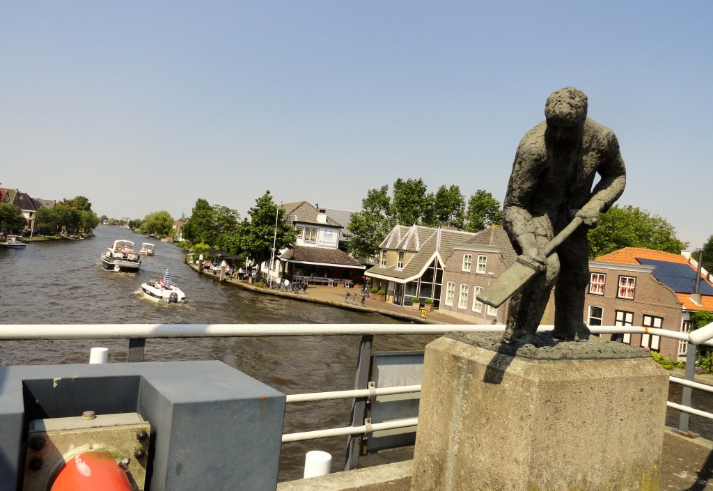 - De brug van Woubrugge is een keerpunt in de route, eerste rijdt je aan de westkant en daarna aan de oostkant van de Woudwetering. Restaurant Disgenoten doet goede zaken. Overigens het bakkertje aan de andere kant van de wetering schenkt tegenwoordig ook koffie met of zonder gebak. Vroeger kochten we daar onderweg nog weleens krentenbollen. Als het erg mooi weer was, waren ze dikwijls uitverkocht. Vandaag neem ik ice tea op het terras van Disgenoten.