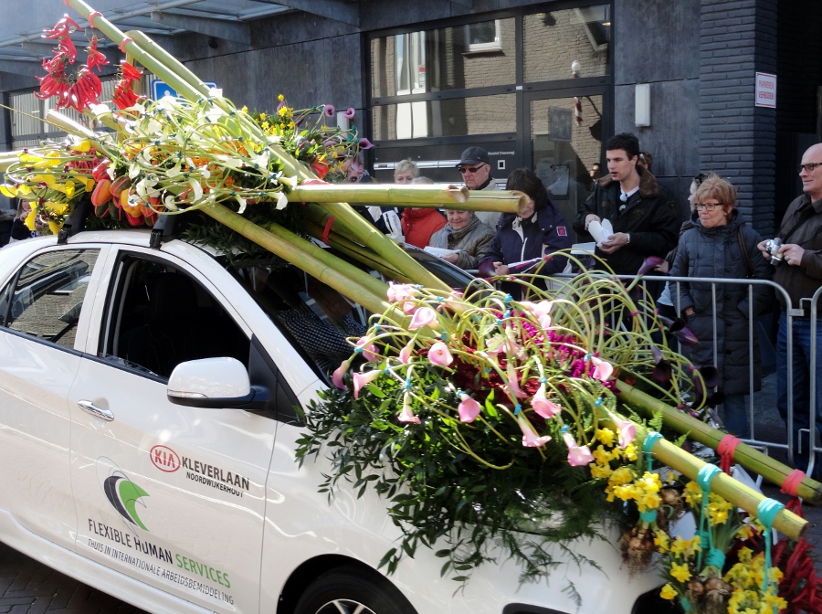 Er zijn vandaag op deze zonnige dag ongeveer 1 miljoen aanwezig in de Bollenstreek om te kijken naar het grootst opgezette bloemencorso van Nederland.