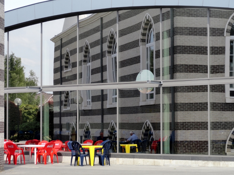Bij het Fonteintje tussen Hechtel en Beringen pik ik een terrasje bij de Uitzichttoren. Er is hier een kapel waar sommige mensen naar toekomen. Bij de vele horecagelegenheden hier daarentegen is het stervens druk. Het lijkt de Lage Vuursche wel.