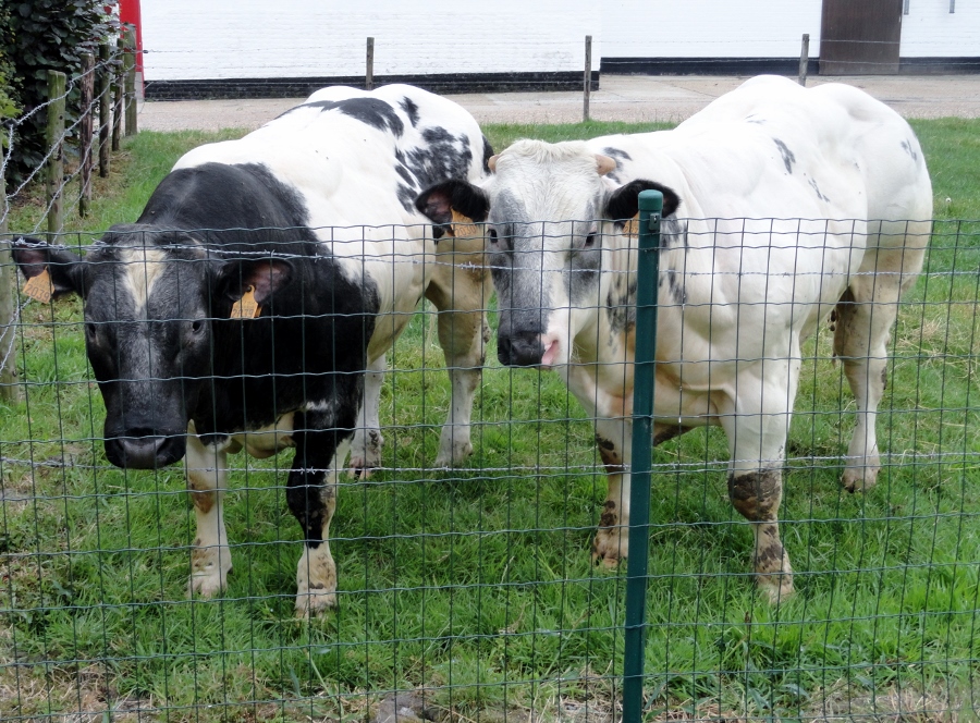 Een tiental kilometer vanaf de camping geniet ik van mijn ontbijt. Er klinken onheilspellende geluiden. Twee jonge stieren achter een hek vragen nogal wat aandacht.