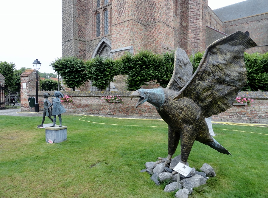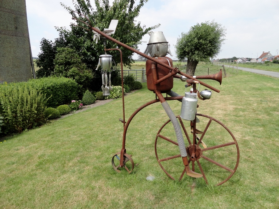 Het volgende dorp is Lissewege. Overal in het dorp zijn beelden opgesteld van verschillende kunstenaars. Ze noemen het de ‘Beeldenroute in het witte dorp’. Alle huizen in dit dorp zijn wit geverfd. Dat valt met nu pas op.