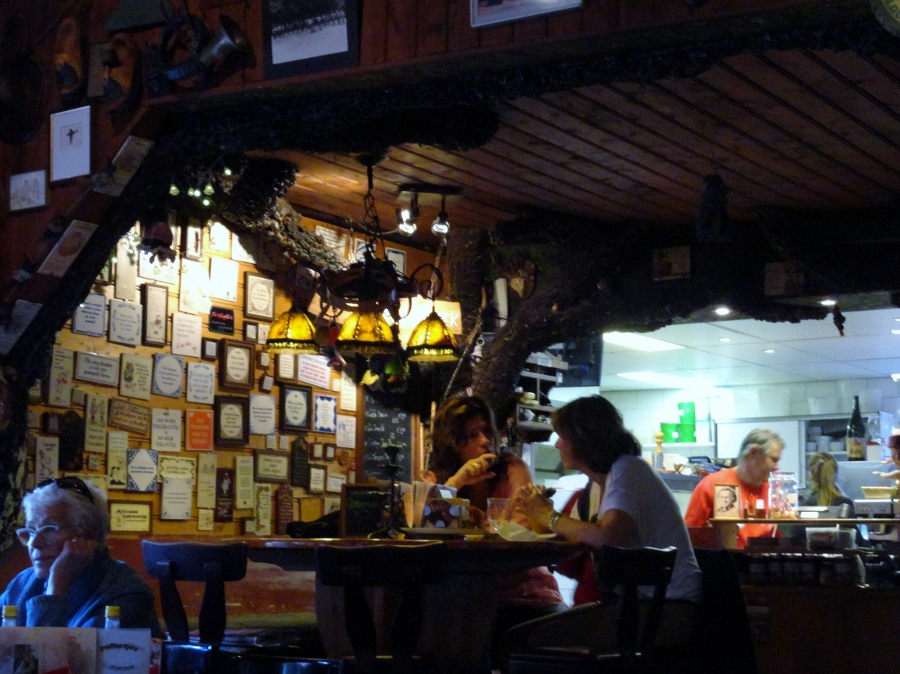 Het houten bosrestaurant in Pannenland bij Vogelenzang is gesierd met heksen en kabouters. Ze hebben tegenwoordig ook weer een papegaai.
