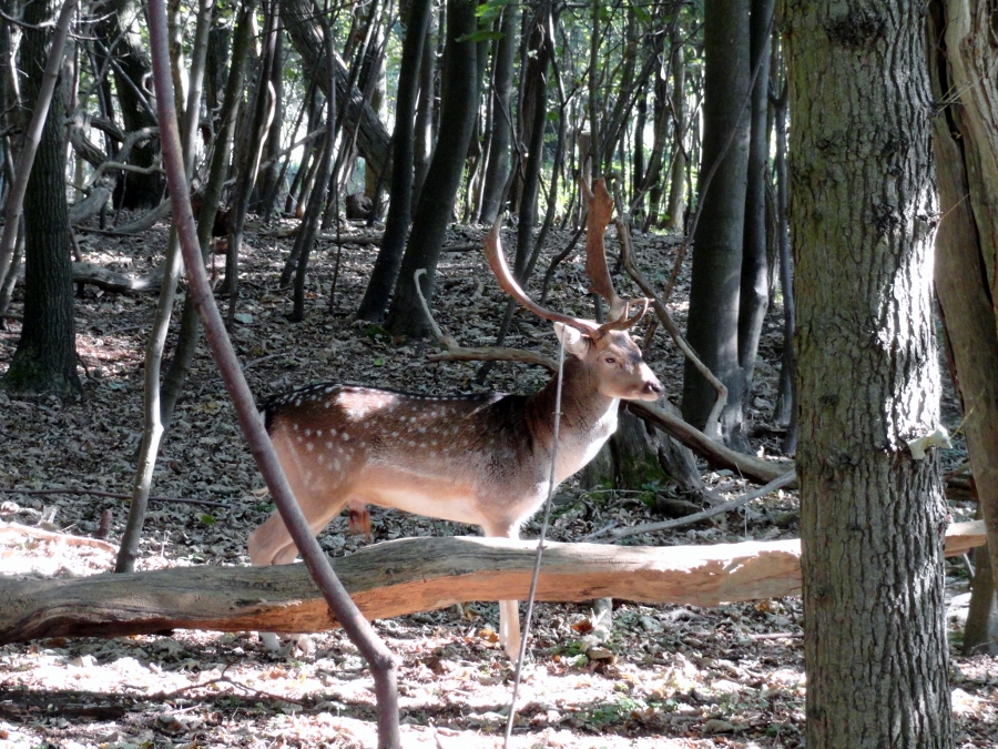 Dit mannetjeshert staat aan de verkeerde kant van het hoge hek wat om de AWD is aangebracht. Of het voor hem nog mogelijk is om vóór de aanvang van de bronstijd binnen de hekken te komen, vraag ik me af.