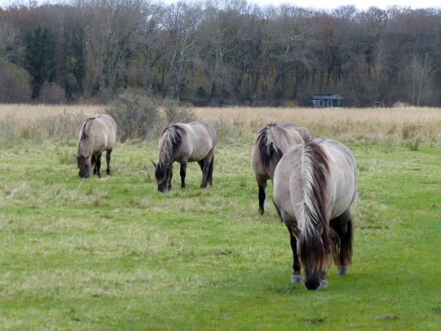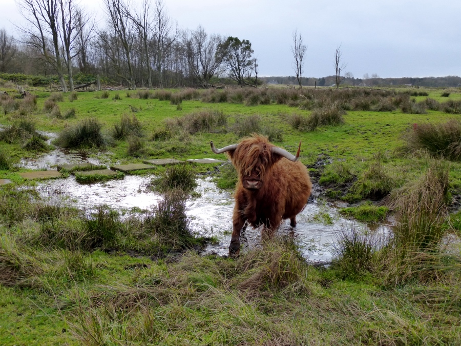 Een klein beetje regent het soms wel onderweg, maar dat mag de pret niet drukken. Over harde paden lopen we bijna niet, we struinen over kleine paadjes en over zandbanen. Best de moeite waard. Na drie uur wandelen strekken we de benen in de uitspanning waar we begonnen en ook de auto staat.