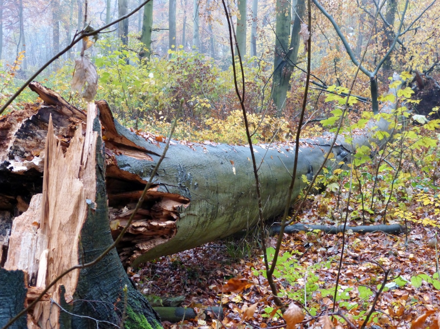 In het park bij onze tandarts is een boom omgewaaid tegen andere boom aan. Als die laatste boom het begeeft valt hij op de praktijkruimte. Joke en ik mogen vanmorgen hier in de stoel van de tandarts liggen. De praktijkkamer waar wij zijn ligt aan de goede kant van het gebouw, volgens de tandartsassistente.