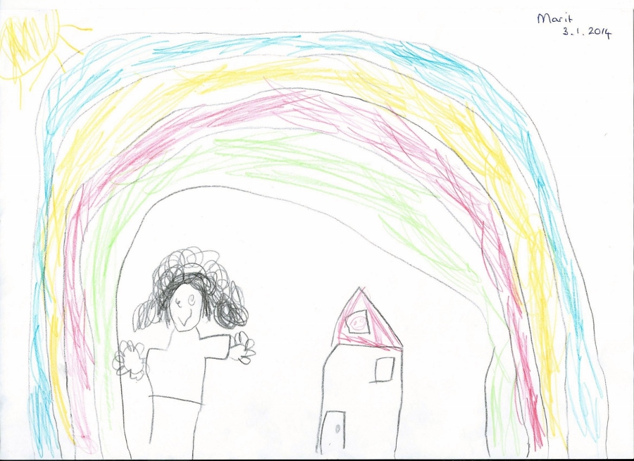 Gisteren was ik jarig. Het was voor mij een erg gezellige verjaardag. Onze zonen, de schoondochters, de kleinkinderen, mijn zussen en de meeste broers, schoonzussen en zwagers kwamen op visite. Het was weer een gezellig gebeuren. Onze oudste kleindochter, die pas 5 werd, nam een werkstuk mee van een hart met een groen strikje. ‘Dat groen is gras’, vertelde ze me. Ook maakte ze nog een prachtige tekening terwijl ze bij ons op visite was.