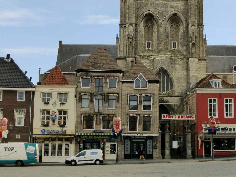 Rond de Grote Markt zijn hier en daar al carnavalversieringen aangebracht. Carnaval is pas volgende maand. Na de oude binnenstad wandel ik door een stadspark naar de Binnenscheldeboulevard. Daar voel ik dat er toch aardig wat westerwind staat. Je waait hier uit je hemd. Later tijdens de wandeling heb ik niet veel last meer van de wind. Ik kom in de Markiezaat, een natuurgebied met op de lagere plekken soms drassige paden.