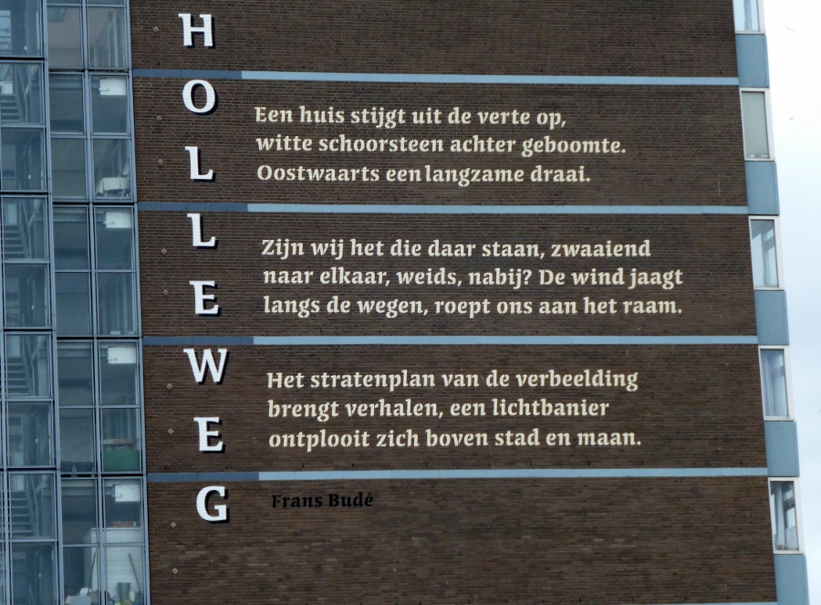 Bij Stayokay Bergen op Zoom staat een ander richtingbord voor wandelaars dan die ik hier tweeënhalf jaar geleden zag toen ik het Graaf Floris V-pad liep. Het nieuwe bord is al aardig groen van de alg. Via een aantal doorgaande wegen door naoorlogse woonwijken kom ik aan bij de achterkant van het station. De eerste druppels regen vallen uit de lucht. M’n schoenen hebben het gered. Ze zijn niet gaan lekken.