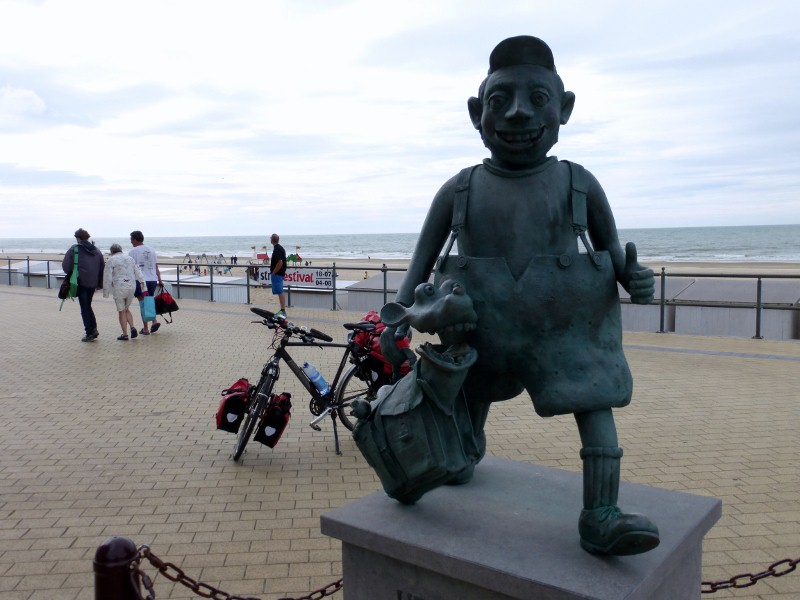 Daarna een stuk langs een kanaal en verder naar de kust. Oostende is een enorm grote kuststad, groter dan Scheveningen. Tegenwind fietsen we zuidwaarts naar Nieuwpoort. De WK-voetbalwedstrijd van België is al bezig. Wij zetten de tenten op en zitten om 10 uur voor de buis om te kijken naar Nederland-Costa Rica.