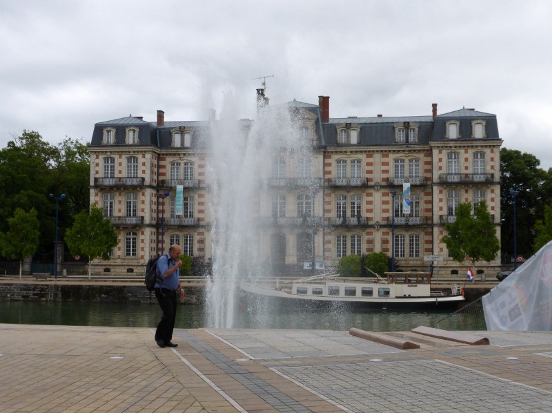 Na een behoorlijke klim krijgen we een grootse afdaling naar de regiohoofdstad Pont-á-Mousson. Deze stad ligt aan de Moezel. Er is een Grote Markt en er is hier veel volk op de been. Ook staan er aardig wat oldtimerauto’s langs het plein geparkeerd. Er zal wel een rally zijn.