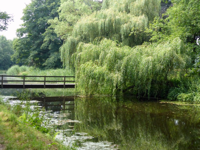 Voor het dorpshuis staan twee vrij nieuwe picknicktafels. Dus een goede plek voor een kop koffie uit eigen thermosfles. Om een enkel plasje na, zijn de paden door de bossen en velden droog, al is wel te zien dat het de afgelopen dagen zo nu en dan flink geregend heeft. Het is kortebroekenweer, heerlijk warm maar ook weer niet te heet. Een zomerjack en een dunne plastic regencape zitten in mijn rugtas. Ik heb ze vandaag niet nodig. Grote delen van Nederland hebben vandaag te maken met regen en onweer en veel wateroverlast.