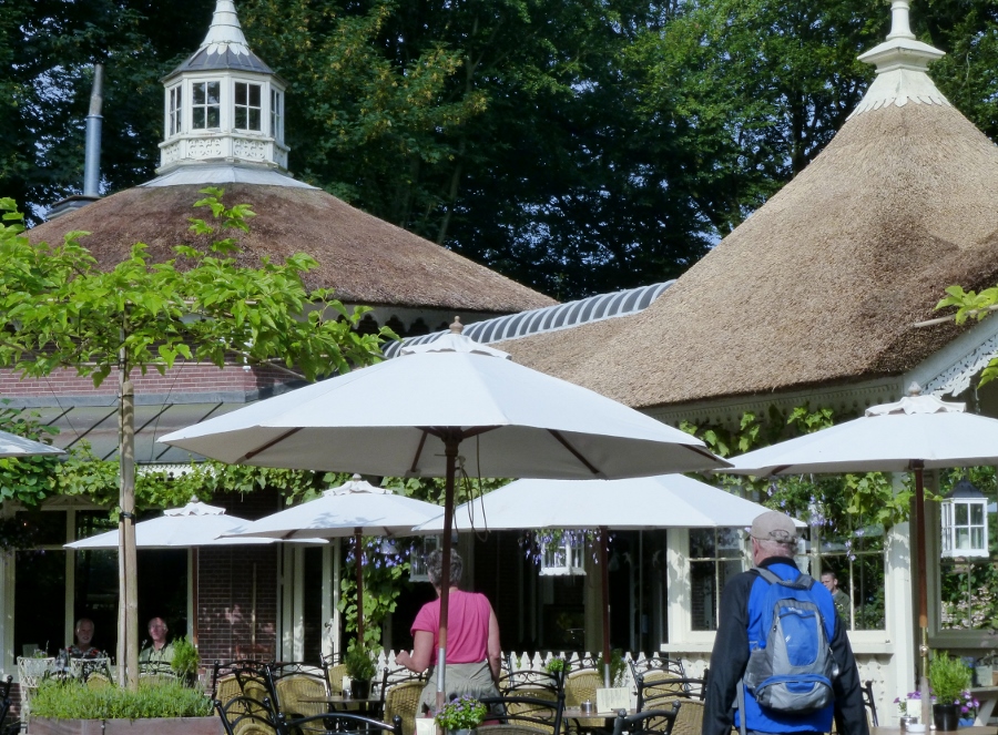 Op Landgoed De Horsten, het natuurgebied rond de woning van Koning Willem-Alexander en Koningin Máxima, zitten we in het sprookjesachtig theehuis aan de koffie. Of wij met deze consumpties bijdragen aan het inkomen van het Nederlandse vorstenpaar is ons niet bekend.