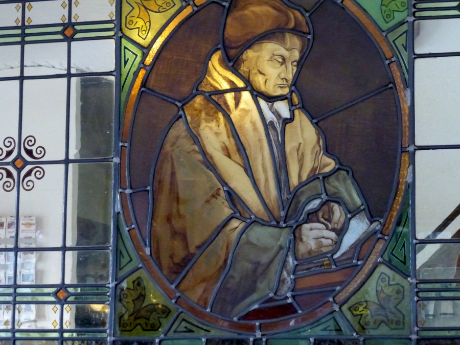 Glas-in-loodraam bij het restaurant aan de Wassenaarse Slag