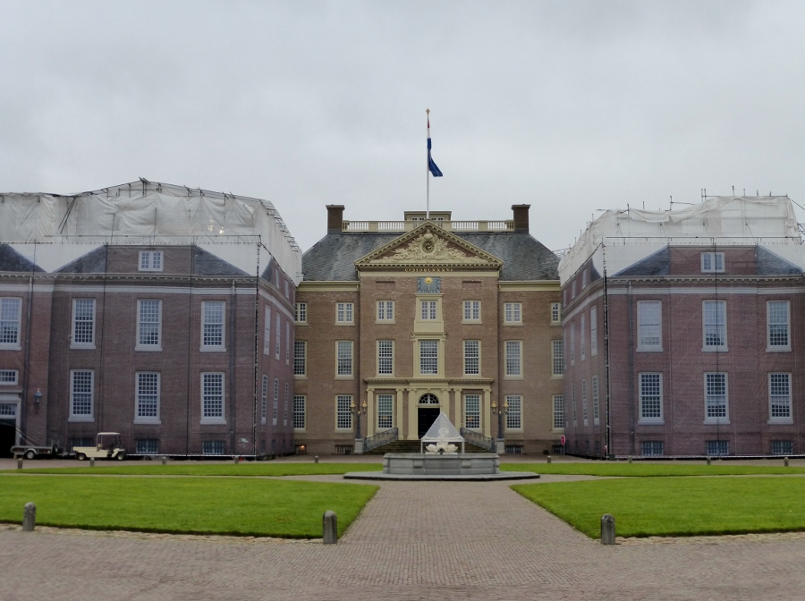 Druk is het niet in het bos rond het paleis van de toenmalige koninginnen Emma en Wilhelmina. Wel een mooi park, hier en daar erg netjes aangeharkt en op sommige stukken gelukkig ook wat minder. Onderweg maak ik een praatje met een man die een op benzine aangedreven bladblazer hanteert.