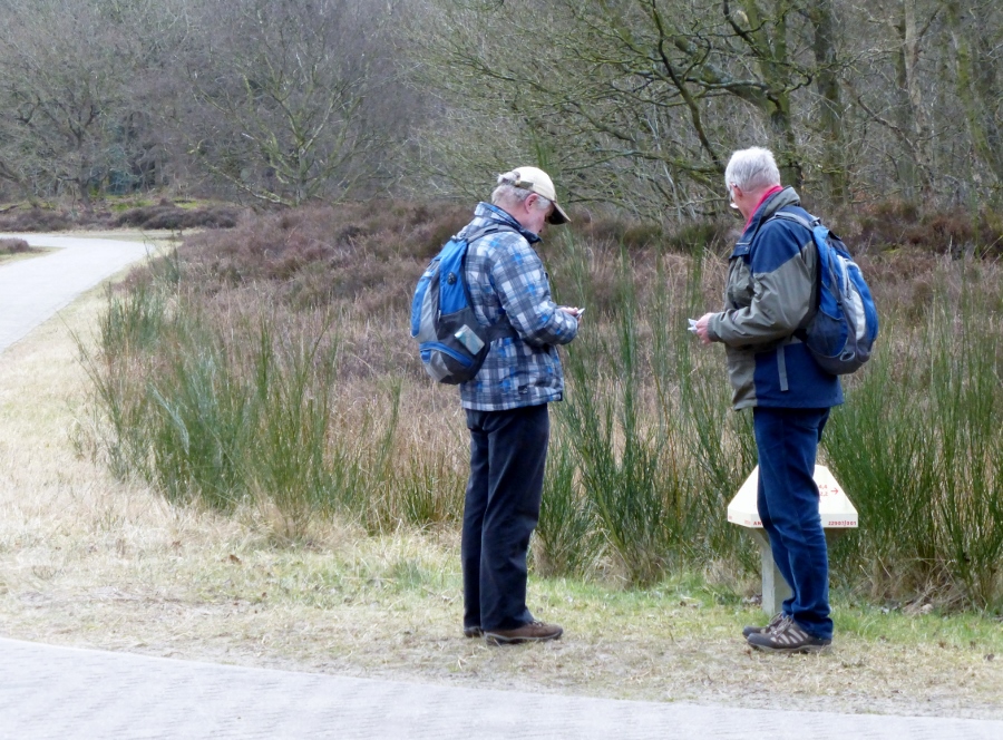 Een stukje voorbij een oude grenspaal lopen we op de Uilenvangersweg. We praten over de Oehoe van Purmerend. Rond twaalf uur zijn we vlak bij Schoorl. We verlaten de route met de wit-rode aanduidingen, om het centrum van Schoorl te bezoeken. Een BN-er, Ron B, zegt ons vriendelijk gedag als we in de winkelstraat van dit dorp lopen.